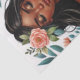 Le papier tissus présente une illustration florale d'une belle femme spirituelle noire aux cheveux longs, aux yeux fermés et aux paumes serrées dans une position de prière. La beauté à la peau foncée semble sereine pendant qu'elle prie, et elle est encadrée par une variété de fleurs et de feuilles. Elle porte une robe de style paysan. Cottagecore féminin spiritualité esthétique oeuvre botanique.