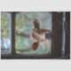 Papier Mousseline Une vache curieuse regardant à travers une fenêtre