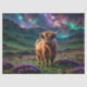 Belle vache Highland entourée de luxuriantes montagnes vertes et nébulas colorés dans le ciel. ART AI CRÉÉ PAR MINX267