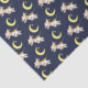 Originale aquarelle lune sautant tissu d'art de la vache. Jolie vache sauteuse et joyeux lune répéter papier de tissu à motifs. La couleur de l'Arrière - plan peut être changée si nécessaire en bleu foncé. Peinture d'aquarelle originale et design motif par Sarah Trett pour www.mylittleeden.com