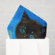 Tissue Paper avec un chat Van Gogh dans le style de Starry Night! Un chaton noir moelleux perche sur une table contre un ciel bleu nuit et une lune jaune. Un cadeau à la purr pour les amoureux de les chats et collectionneurs d'art hollandais !