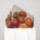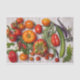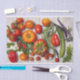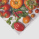 Top view of an organically homegrown vegetable and herb harvest, y compris les tomatoes, cucumbers, beans, hot peppers, basil, sage et origan