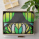 Ce vitrail au design d'inspiration art déco présente des lignes géométriques qui créent un motif symétrique. L'élément central du design est un arbre stylisé, rendu dans un style vitrail. L'arbre est composé d'une série de formes angulaires géométriques qui lui donnent un aspect audacieux et frappant. Les branches de l'arbre s'étendent vers l'extérieur, créant un sentiment de mouvement et de dynamisme dans le design. L'arrière - plan du motif est composé d'une série de formes symétriques. L'utilisation de formes géométriques et de motifs répétitifs est une caractéristique du style art déco, donnant à l'ensemble un sens de l'ordre et de l'équilibre. Les couleurs utilisées dans la motif sont vives et vives, avec une palette de tons verts dominant la palette. Ces couleurs donnent au design un sens de la vie et de l'énergie, tout en complétant l'effet de vitrail de l'arbre. Rendu à l'aide d'une technologie de pointe, ce vitrail est un design saisissant et attrayant.