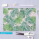 Papier Mousseline Vert feuillage tropical sur aquarelle rose