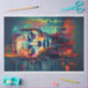 Papier Mousseline Vibramment Abstrait Portrait Chaotique Lady Découp