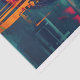 L'image de la dame est composée d'un rectangle central flou aux couleurs dégradées, entouré d'un mélange dynamique et chaotique d'éléments d'art numérique. Diverses formes, lignes et formes géométriques créent une texture visuelle complexe autour du focus central. Les couleurs sont variées : bleu, orange, rouge, jaune et noir, ce qui contribue à l'énergie dynamique de la pièce.