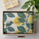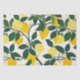 La motif est décorée dans un style animé et animé avec des citronniers luxuriants. Les branches sont ornées de citrons mûrs et jaune vif, dont certains sont tranchés à découvert pour révéler leur intérieur juteux. Les citrons sont entourés de feuilles verts qui contrastent avec l'arrière - plan de couleur crème et chaleureux. L'ensemble est audacieux et stylisé, avec des lignes épurées et un sens de la symétrie, créant une esthétique fraîche et joyeuse qui évoque une ambiance méditerranéenne.