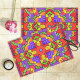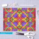 Tout comme une vitre dans un vitrail moderne, ce design crée un impact coloré avec ses tons vifs de rouge, de violet et de vert. La croix centrale est entourée de quatre rectangles symétriques aux formes décoratives. Convient pour les occasions heureuses, ainsi que pour encourager les gens. Aussi utile pour l'artisanat et les projets de découpage.