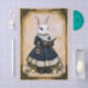 A charming anthropomorphic white rabbit stands gracefully in a richly detailed, vintage inspired portrait. Dressed in a Victorian-style dress with delicate lace trim, puffed sleeves, and a ruffled collar, the rabbit appears absorbed in reading a beautifully decorated book. A small, ornate handbag hangs at her side, adding to the elegant, storybook aesthetic. The background features an aged parchment look with botanical flourishes and an intricately illustrated border, giving the whole piece a classic fairytale vibe. Soft shading, refined textures, and the gentle expression on the rabbit’s face create a warm, nostalgic, and whimsical scene, reminiscent of fine art illustration blended with cottagecore fantasy……COLOR COMBINATIONS: Navy blue, cream, ivory, beige, tan, gold, charcoal, pink, green……PERFECT FOR: Decoupage, furniture upcycling, Easter mixed media, collage, art panels, journals, shabby chic, cottagecore, dark academia, fairytale crafts, vintage inspired décor, storybook projects, and whimsical animal themed artwork.........…... 🖤 NOTE 1. This design is available in two options: Left and Right. You can find them in the Collection shown below. If they don’t appear there, try searching for their unique identifiers: ER7L for the Left design and ER7R for the Right version….🖤 NOTE 2. The 18 lb tissue is a great choice if you like a little extra strength—it's easier to handle, resists tearing and allows for gentle repositioning. It’s also more opaque, making it perfect for darker surfaces. The 10 lb tissue is wonderfully lightweight and flexible giving you that smooth, blended finish. It’s ideal for layering on furniture or smaller projects so treat it gently and it will reward you with stunning results!.….🖤 NOTE 3. All items with this particular design share my unique identifying “Letter/s Number/s” label in the title for easy searching. …..🖤