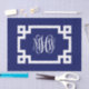 Papier Mousseline Vigne blanche marine Script Monogramme Clé grecque