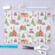 Papier Mousseline Village de Noël Vintage avec sapin de Noël