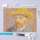 Vincent Van Gogh ! Le maître post-impressionniste, Vincent Van Gogh, a réalisé plusieurs autoportraits. Celui-ci est un autoportrait de l'artiste dans un casquette en paille. L'oeuvre d'origine est dans le Metropolitan Museum of Art. Maître de l'impressionnisme, c'est l'autoportrait de Vincent, dans des couleurs splendides.