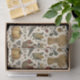 A softly detailed autumn pattern inspired by antique botanical illustrations and early harvest prints. Heirloom pumpkins, pears, apples, corn, wheat sheaves, birds, berries, and delicate foliage are arranged across a warm parchment-toned background. The muted palette of dusty blue, soft sage, warm rust, and golden wheat gives the design a calm, nostalgic elegance.