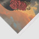 "Union éternelle." Il reflète l'engagement éternel symbolisé par le couple squelettique dans leur tenue matrimoniale, dressé contre la beauté intemporelle de la nature. 2 squelettes habillés en tenue mariage, debout côte à côte et tenant la main. Le squelette de gauche est orné d'une robe florale rouge et noire, d'un voile et d'un bouquet de roses rouges, tandis que le squelette de droite porte un costume noir avec un gilet rouge, une cravate et une boutonnière de rose rouge. Les deux squelettes portent des chapeaux avec des roses rouges attachés à eux, et ils sont placés devant un paysage automnal avec des arbres et des feuilles tombés, sous un ciel dramatique qui passe de bleu à orange. On peut voir une maison seigneuriale dans l'arrière - plan.