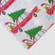Papier tissulaire avec une vieille voiture rouge cool portant un pin vert de Noël sur son toit et un cadeau caché dans le coffre ouvert. A une belle ambiance rétro des années cinquante.
