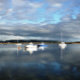 Une vue nocturne sur le port d'Aberdyfi après une journée de pluie le soleil sort.
