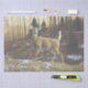 Un chien blanc est surpris par votre présence. Les feuilles d'automne et un léger dépoussiérage de neige indiquent qu'il est à la fin de l'automne dans la forêt. OEuvre d'art réaliste créée à partir d'une peinture à l'huile originale de l'équine et de l'artiste faunique Crista S. Forest.