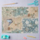 Fabriqué à partir de 3 peintures de papillons d'Audrey Jeanne et de 4 peintures d'art originales et de croquis de William Morris dont une belle illustration botanique de tulipe florale, feuillage de style éphémère brun et bronzé, plusieurs motifs floraux partiellement peints en turquoise, bleu aqua vert et blanc doux. De multiples variantes sur ce collage sont disponibles pour une grande surface comme des poignards, armoires, tables et autres meubles décoratifs similaires. Idéal pour un style vintage moderne Cottagecore design esthétique. Elles ont été dessinées sous forme graphique dans un collage complexe par Audrey Jeanne Roberts, artiste et designer de renommée internationale, copyright.