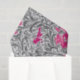 Papier de tissus dans un William Morris, Art Nouveau, imprimé textile d'iris et de feuilles, numériquement rehaussé et coloré, en fuchsia et rose pâle, avec graphite et feuilles gris moyen / gris, sur un arrière - plan gris argenté clair