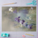 Capture the richness of a twilight garden with this dramatic iris watercolour featuring deep purple and royal violet blooms against soft sage and misty backgrounds. Part of the Wisdom's Muse collection, this design showcases bold iris flowers with golden ornamental grasses and delicate white blooms creating layers of botanical beauty.