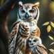 Papier Mousseline Wise white owl with baby sitting on a branch