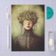 An ethereal portrait of a woman with porcelain pale skin wearing an ornate, Victorian-inspired gown of deep adorned with soft floral details. Her eyes are covered by a delicate lace band while her hair blooms into a lush crown of greenery sprinkled with tiny flowers, cascading gracefully around her face. The softly blended background enhances the dreamy, surreal tone of the piece, merging elegance with nature’s quiet magic. This artwork beautifully captures the essence of botanical fantasy infused with cottagecore and dark academia charm, making it ideal for projects that balance mystery and natural beauty. Artwork similar to a fine art oil painting with romantic surreal undertones……COLOR COMBINATIONS: Sage green, moss, blue, gold, pink, ivory, cream…..PERFECT FOR: Botanical and fantasy themed decoupage, shabby chic and cottagecore mixed media, romantic collages, artistic furniture upcycling, and creative home décor inspired by nature......…... 🖤 NOTE 1. The 18 lb tissue is a great choice if you like a little extra strength—it's easier to handle, resists tearing and allows for gentle repositioning. It’s also more opaque, making it perfect for darker surfaces. The 10 lb tissue is wonderfully lightweight and flexible giving you that smooth, blended finish. It’s ideal for layering on furniture or smaller projects so treat it gently and it will reward you with stunning results!.….🖤 NOTE 2. All items with this particular design share my unique identifying “Letter/s Number/s” label in the title for easy searching. …..🖤