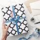 Papier noir et blanc d'emballage cadeau de Quatrefoil. Mat imprimé, brillant de haute qualité, toile ou papier de papier d'enveloppe de cadeau de Tyvek. Conception géométrique de motif de quatrefoil classique, fabriquée et imprimée aux Etats-Unis. Idéal pour l'anniversaire, l'anniversaire et les cadeaux ou les cadeaux de Noël de mariage.
