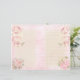 Roses roses clairs et fleurs roses minuscules avec un espace d'écriture beige clair, bordée de lignes dorées sur le côté droit. Arrière - plan d'aquarelle rose des deux côtés. Lignes blanches à l'arrière à gauche. A un style vintage et rustique.