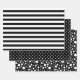 Trois motifs en noir et blanc : bandes de base, pois et taches aléatoires.