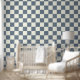 Papier Peint 2" Ardoise en damier bleu et blanc ivoire