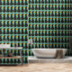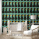 Papier Peint Abstrait moderne Motif d'oiseaux Gras Noir & Turqu