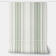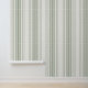Ce papier peint présente des rayures modernes de la ferme dans les tons vert sauge sur crème.