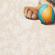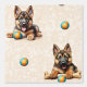 Aquarelle berger allemand chiot chien avec une boule et os sur arrière - plan crème texturé.