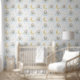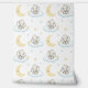 Papier Peint Aquarelle Bébé Eléphant Nuages Étoiles Lune endorm