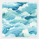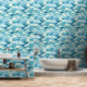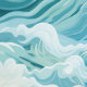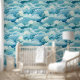 Papier Peint Aquarelle Bleu Blanc Abstrait Vagues de mer Côtier