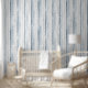 Le papier peint est décoré d'un motif d'aquarelle aux rayures galbées dans les tons bleu ardoise et gris sur le blanc pour un look contemporain.