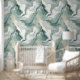 Papier Peint Aquarelle moderne Sage Marbre vert