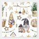 Papier Peint Aquarelle Noël Gnomes Noir Blanc Or