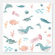 Une belle aquarelle colorée océan animaux de mer design motif. Un design de créatures océaniques avec de mignons animaux de mer comme une tortue, baleine, dauphin, méduse, poisson, narval, plantes de mer et corail. Un design idéal pour tous ceux qui aiment les animaux de mer, les illustrations aquarelles et les motifs océaniques.