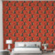 Ce motif de sapin de Noël en dessins animés colorés a un arrière - plan orange personnalisable. Noël, arbres, animaux de Noël et autres symboles de Noël.