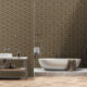 Inspiré par les motifs de vagues japonais, la seigaiha, et la magie élémentaire que l'on trouve dans les mondes de l'imaginaire, ce design représente la terre, avec des nuances de brun dans une forme géométrique pour indiquer la solidité des roches et les barrières et les sorts auxquels l'élément est associé.