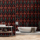 Papier peint rouge baroque | Décor Halloween. Améliorez votre espace grâce à mon papier peint en Arches gothiques noir et rouge foncé. Ce design mystique présente des arches gothiques entrelacées, inspirées du château de Dracula et des romans gothiques romantiques comme "Le Masque de la Mort Rouge". Parfait pour un mur de fond dans la chambre d'une fille, boudoir gothique, ou comme toile de fond éffrayante pour une fête d'Halloween. Le papier peint amovible est idéal pour ajouter une ambiance sombre et romantique à toute pièce ou événement.