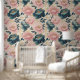 Papier Peint Arômes floraux Or rose bleu sur crème