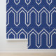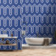 Papier Peint Art Déco Motif 05 - Blanc sur bleu prussien