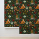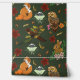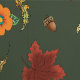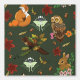 Renard rouge, lapin, hibou, lune, martre de pin, feuilles d'automne, citrouilles, fleurs et glands, le tout dans un décor vert profond