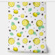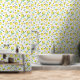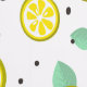 Papier peint avec un motif moderne de feuilles, citrons et olives.