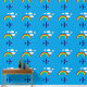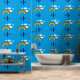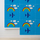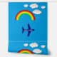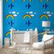 Papier peint coloré de la chambre pour enfants en bleu, avec un graphique de nuages, arcs-en-ciel et un avion personnalisé. Personnalisez le champ de texte pour le lit ou la salle de bain de votre enfant. Idéal pour une utilisation comme bordure ou mur complet.
