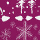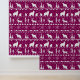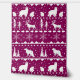 Un motif nordique islandais fantaisiste en blanc avec des animaux d'hiver comme une famille d'ours polaires, le renard arctique, le renne, le renne, la forêt des bois, les montagnes, les étoiles et la chute de neige sur une couleur solide arrière - plan d'une couleur violet profonde et riche couleur prune française.