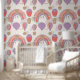 Papier peint crayonné en pépinière avec ours bruns en montgolfières flottant dans le ciel devant un arc-en-ciel, avec une palette de couleurs vives, colorées et girly, aux tons violets, roses, pêche, marron et beige sur un arrière - plan de papier peint blanc cassé. Papier peel et papier peint en forme de papier peint pour enfants, papier peint en pépinière, papier peint en salle de jeux et papier peint de salle de bain pour enfants. Peel and stick fond d'écran est une option idéale pour louer du papier peint, ou fond d'écran pour do-it-yourself amateurs, propriétaires, étudiants de collège, parents et designers d'intérieur.