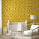 Ce papier peint motif d'abeilles présente un design original d'abeilles sur un arrière - plan clair, jaune doré, peigne de miel. Les abeilles jaunes et noires ont des ailes bleu-blanc gossamer. Ils rampent au-dessus du nid d'abeille.